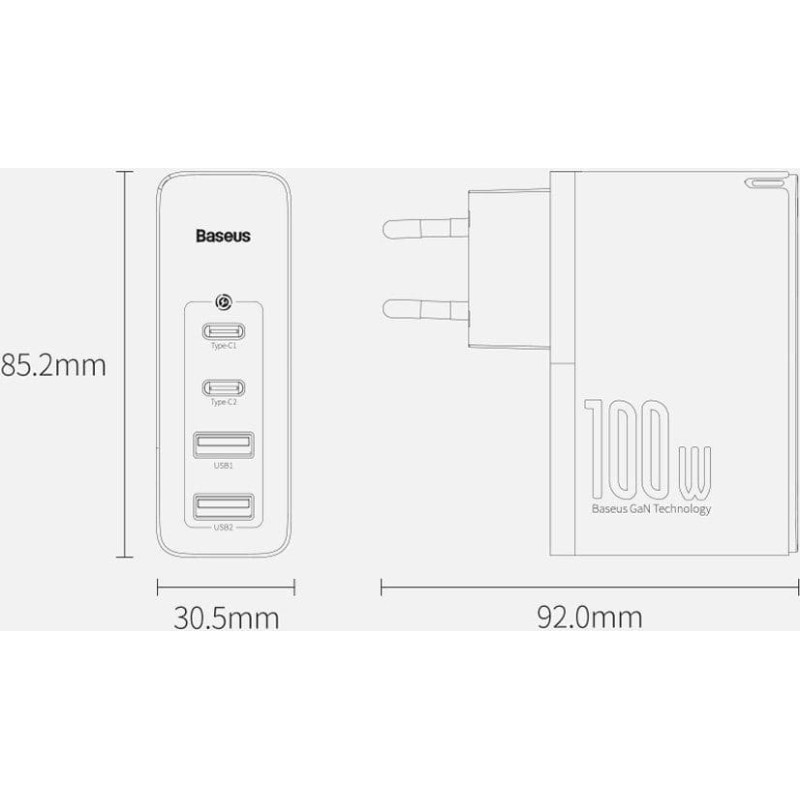 Baseus Travel Charger Baseus GaN2 Pro Quick 2x USB + 2x USB-C, 100W, EU (white)