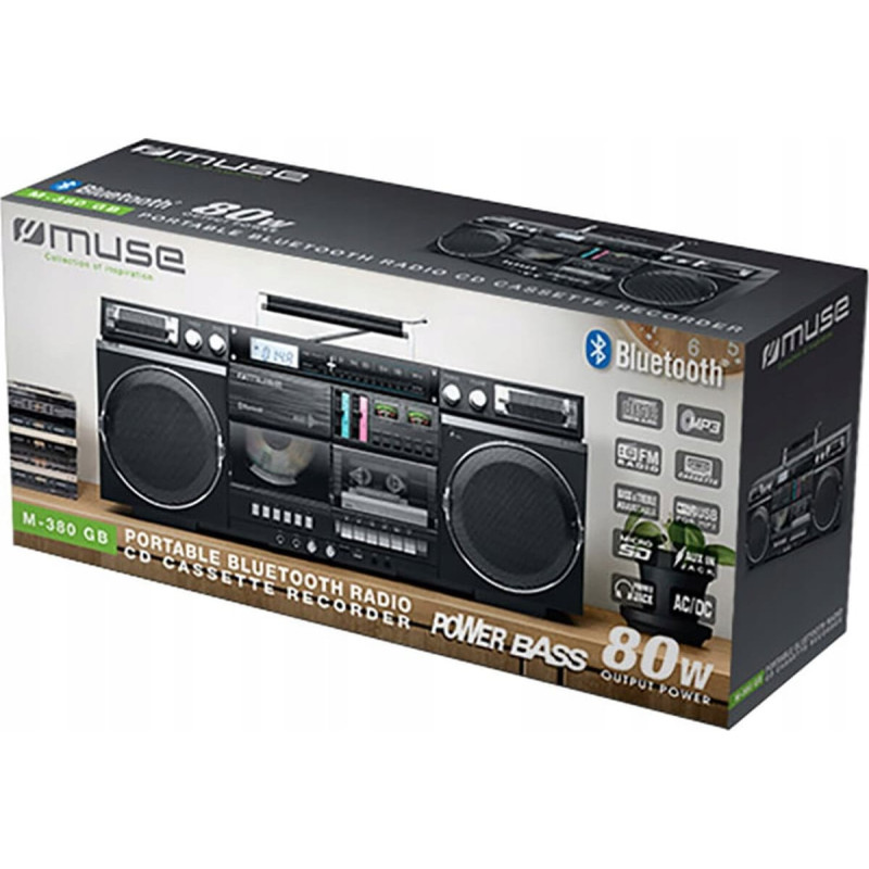 Muse | Ghetto Blasters | M-380 GB | AUX in | Bluetooth | Cassette deck | CD player | Black