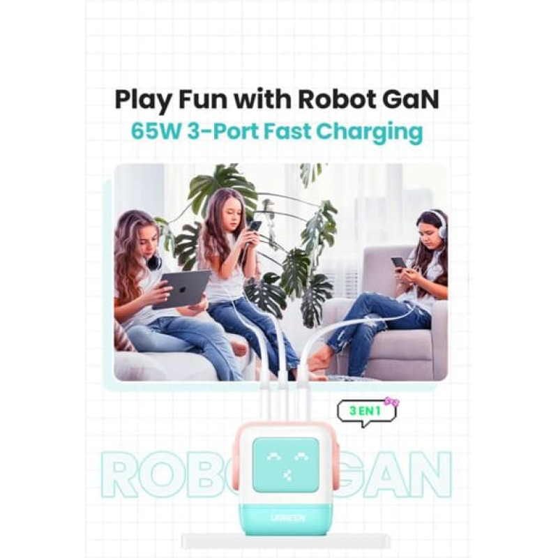 Ugreen Uno RG 65W 3-Port GaN Fast Charger pink blue
