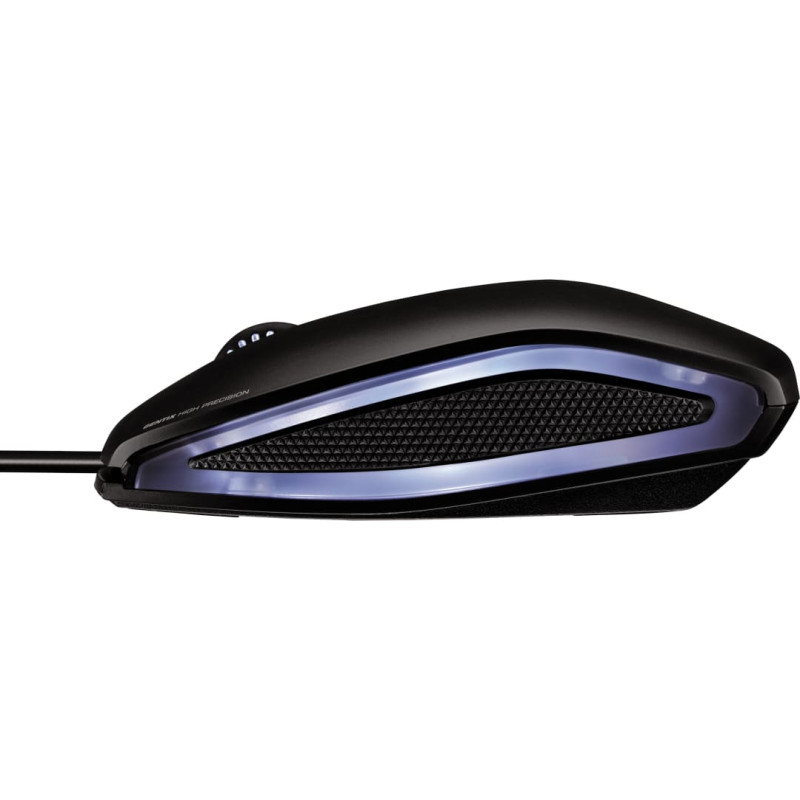 CHERRY Gentix Illuminated. Forma: Abiems rankoms. Judėjimo detekcijos technologija: Optinis, Įrenginio sąsaja: USB A tipo, Judėjimo rezoliucija: 1000 DPI, Mygtukų tipas: Paspausti mygtukai, Mygtukų kiekis: 3, Slinkties tipas: Ratukas. Maitinimo šaltinis: Kabelis. Produkto spalva: Juoda