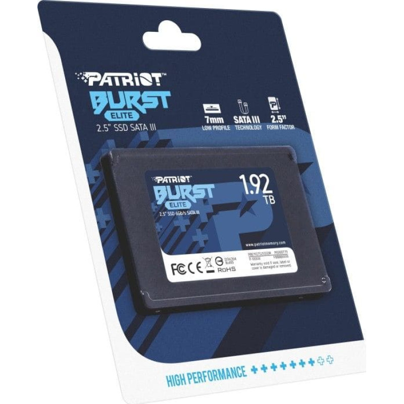 Patriot SSD|PATRIOT|Burst Elite|1.92TB|SATA 3.0|3D NAND|Write speed 320 MBytes/sec|Read speed 450 MBytes/sec|2,5"|TBW 800 TB|PBE192TS25SSDR