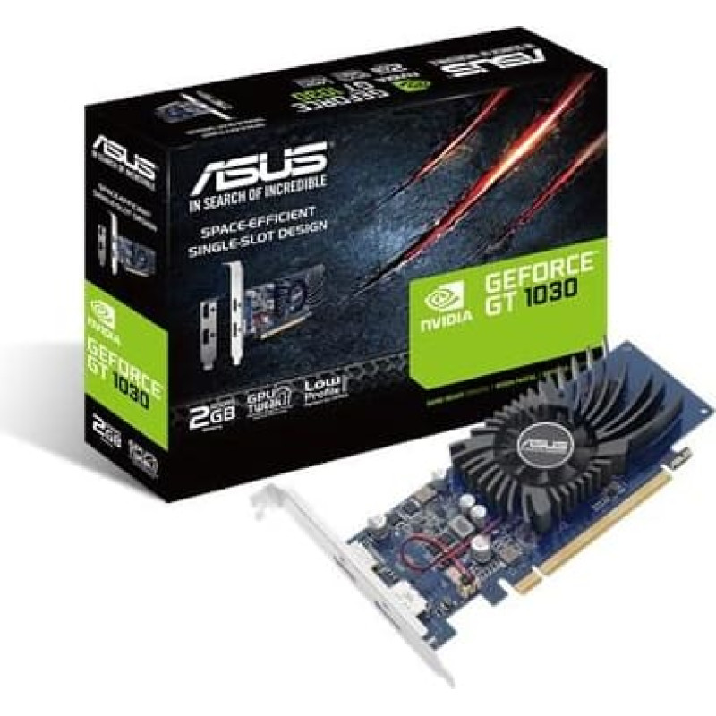 Asus Graphics Card|ASUS|NVIDIA GeForce GT 1030|2 GB|64 bit|PCIE 3.0 16x|GDDR5|Memory 6008 MHz|GPU 1266 MHz|Single Slot Fansink|1xHDMI|1xDisplayPort|GT1030-2G-BRK