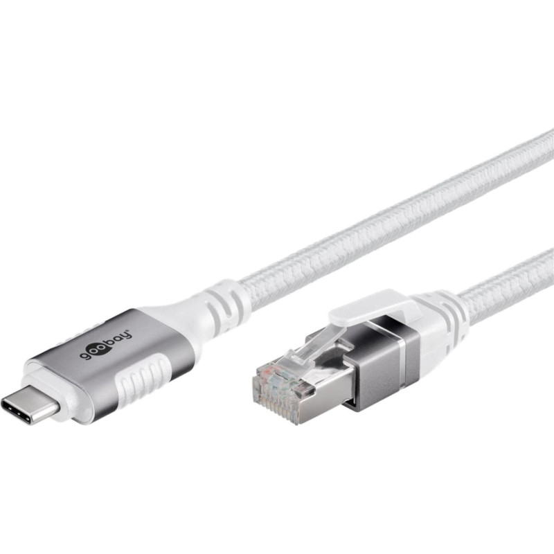 Goobay Ethernet cable USB-C 3.2 Gen2 plug > RJ-45 plug, LAN adapter (white, 2 meters, braided textile sheath)
