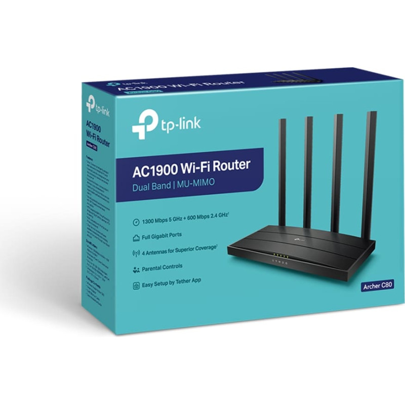 Tp-Link Archer C80 belaidis maršrutizatorius Gigabitinis eternetas Dviguba juosta (2,4 GHz / 5 GHz) Juoda