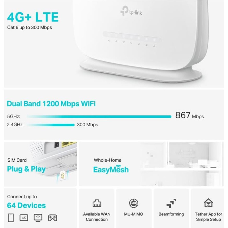 Tp-Link Wireless Router|TP-LINK|Wireless Router|1200 Mbps|IEEE 802.11a|IEEE 802.11 b/g|IEEE 802.11n|IEEE 802.11ac|3x10/100/1000M|LAN \ WAN ports 1|Number of antennas 2|4G|ARCHERMR505