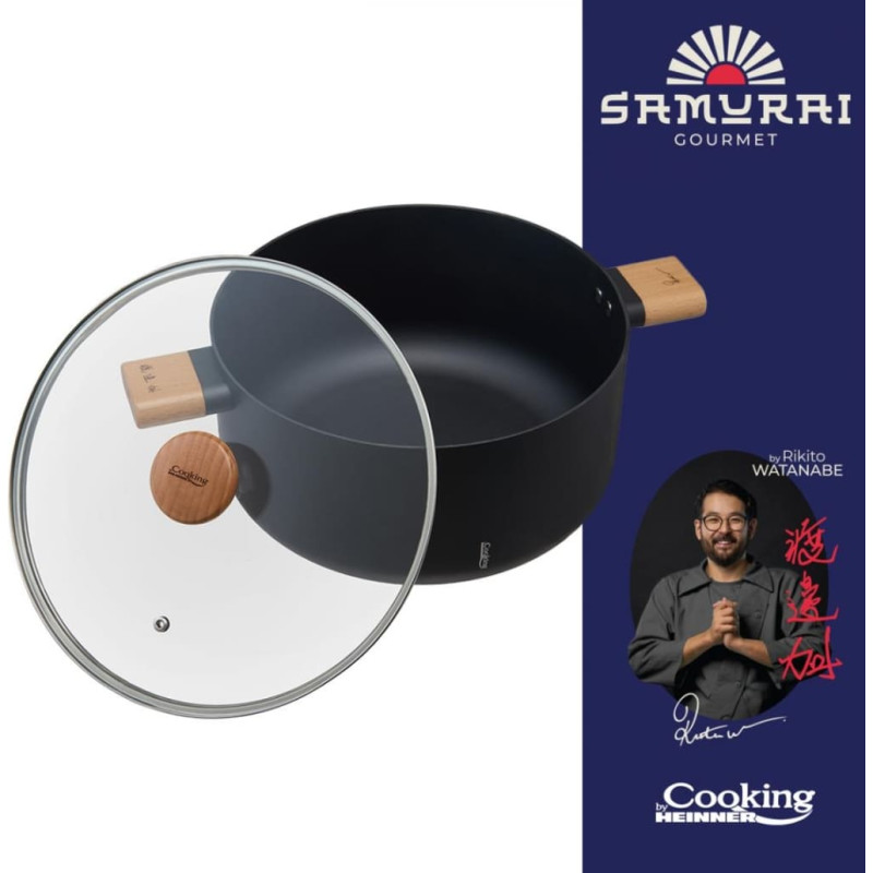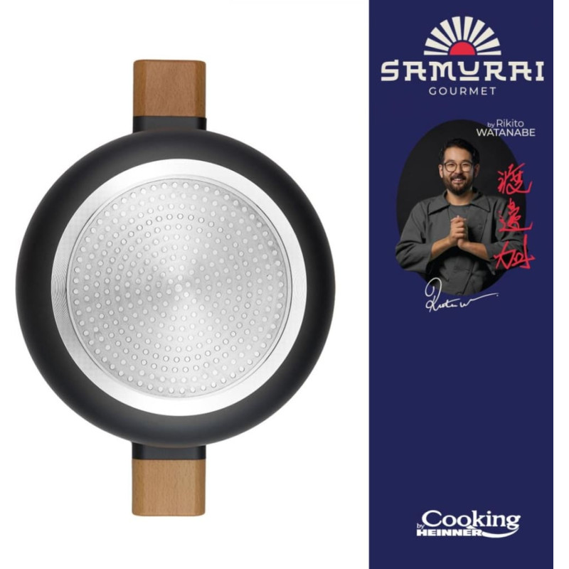 Šis Cooking by Heinner Samurai Gourmet kolekcijos puodas atspindi japonišką maisto gaminimo filosofiją, kurioje dera pusiausvyra, tikslumas ir pagarba ingredientams. Pagamintas iš presuoto aliuminio, jis užtikrina tolygų šilumos paskirstymą, trumpesnį gaminimo laiką ir intensyvesnių skonių išsaugojimą.