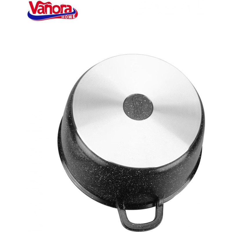 Šis Vanora Home Classic puodas pagamintas iš lieto aliuminio ir turi juodą nelipnią keramikinę dangą su marmuro efektu. Storas aliuminio korpusas ilgiau išlaiko šilumą, todėl ženkliai sutrumpėja gaminimo laikas ir sumažėja energijos sąnaudos.