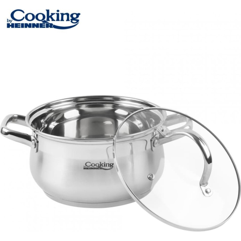 Indukcinis dugnas tinka visų tipų viryklėms, o karščiui atsparus stiklinis dangtis leidžia saugiai stebėti gaminimo procesą. Veidrodinis vidinis paviršius ir satininis išorinis paviršius su veidrodine juosta suteikia puodui prabangų vaizdą.