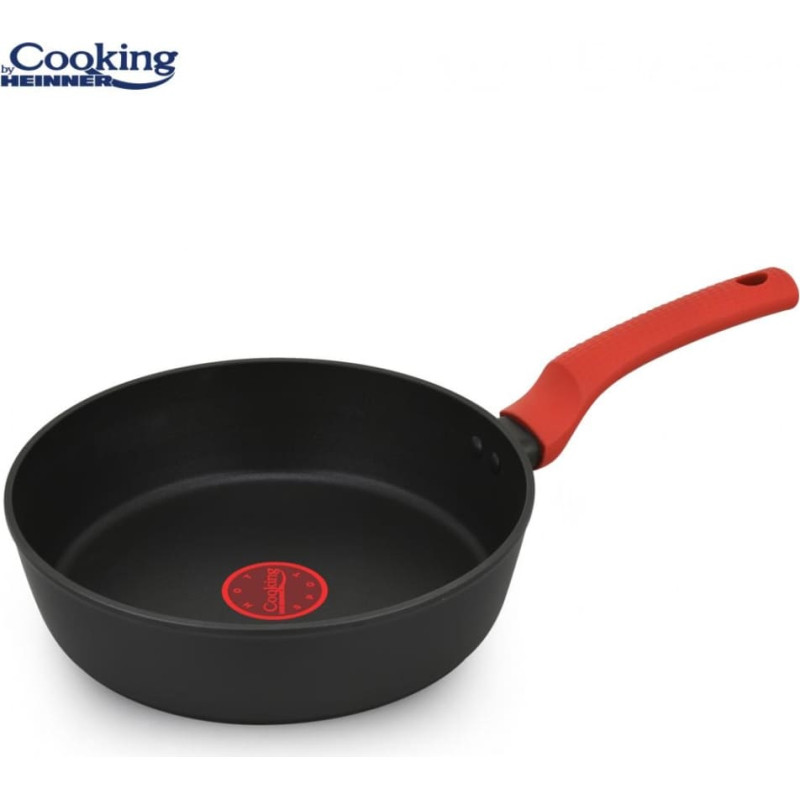 Integruotas Hotspot šiluminis indikatorius keičia spalvą, kai pasiekiama optimali kepimo temperatūra. Indukcinis pagrindas užtikrina suderinamumą su visų tipų viryklėmis, o ergonomiška Soft Touch rankena suteikia saugų naudojimą. Karščiui atsparus stiklinis dangtis padeda išlaikyti šilumą ir drėgmę.