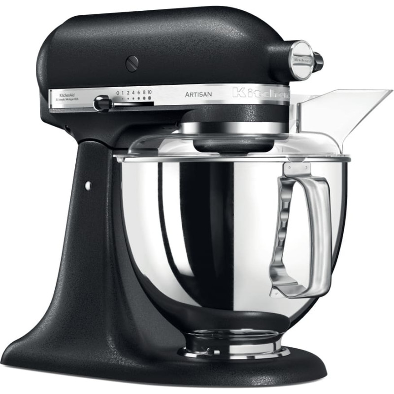 KitchenAid Artisan. Dubens talpa: 4,8 L, Produkto spalva: Juoda, Valdymo tipas: Svirtis. Dubens medžiaga: Nerūdijančiojo plieno, Korpuso medžiaga: Cinkas. Energija: 300 W, AC įėjimo įtampa: 220 - 240 V, AC įėjimo dažnis: 50 - 60 Hz. Plotis: 240 mm, Ilgis: 370 mm, Aukštis: 360 mm. Pakuotės plotis: 406 mm, Pakuotės gylis: 273 mm, Pakuotės aukštis: 413 mm