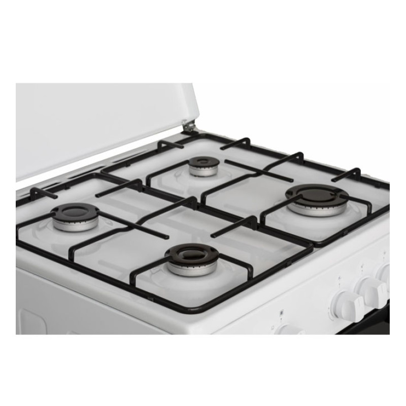 Dujinė viryklė HEINNER HFSC-SME60WH, 60 x 55 cm, 4 dujiniai degikliai, emalinės kaitvietės atramos, metalinis dangtis, dujinė saugos sistema viryklei ir orkaitei, dvigubo stiklo orkaitės durelės, nustatyta NG, įtraukti atsarginiai SND purkštukai, orkaitės padėklas ir grotelės, matmenys (W X D X H): 60 x 55 x 85 cm, Spalva: balta.