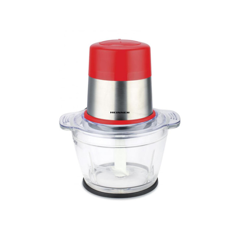 Smulkintuvas HEINNER CAYENNE 1 HMC-D300RD, 300W, Stiklinis indas 1L talpos, Nerūdijančio plieno peilis, 2 greičiai, Nerūdijančio plieno dekoras, Matmenys (I x P x A) 15.4x18.2x22.8 cm, Svoris 1.58 kg, Spalva: Nerūdijantis plienas / raudona
