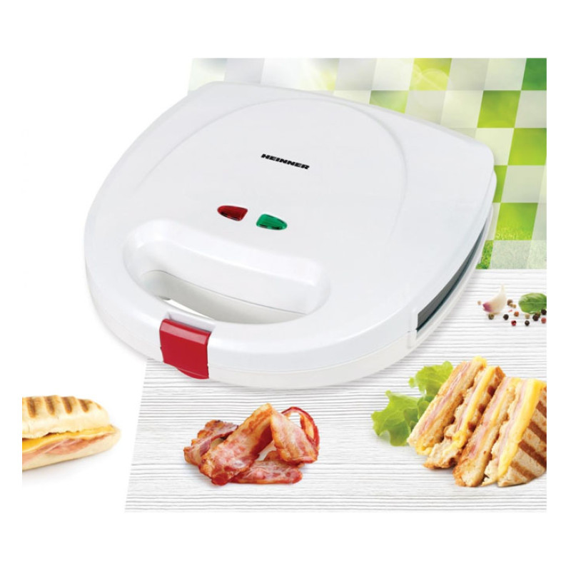 Sumuštinių keptuvė HEINNER Jadde 750 SM-2K750WH, 750W, 2 sumuštinių talpa, Kepsninės ir sumuštinių plokštės, Nuimamos nepridegančios dangos plokštės, "Paruošta naudoti" indikatoriaus lemputė, Įjungimo indikatorius, Lėkščių matmenys: 23,6 x 13,3 cm, Spalva: balta.