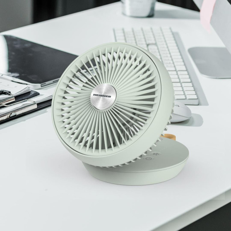 Sulankstomas ventiliatorius Heinner HMF-LC4000GR, 5W, 4 greičio lygiai, 4000mAh baterija, skaitmeninis valdymas, aukštis 29 cm, žalias