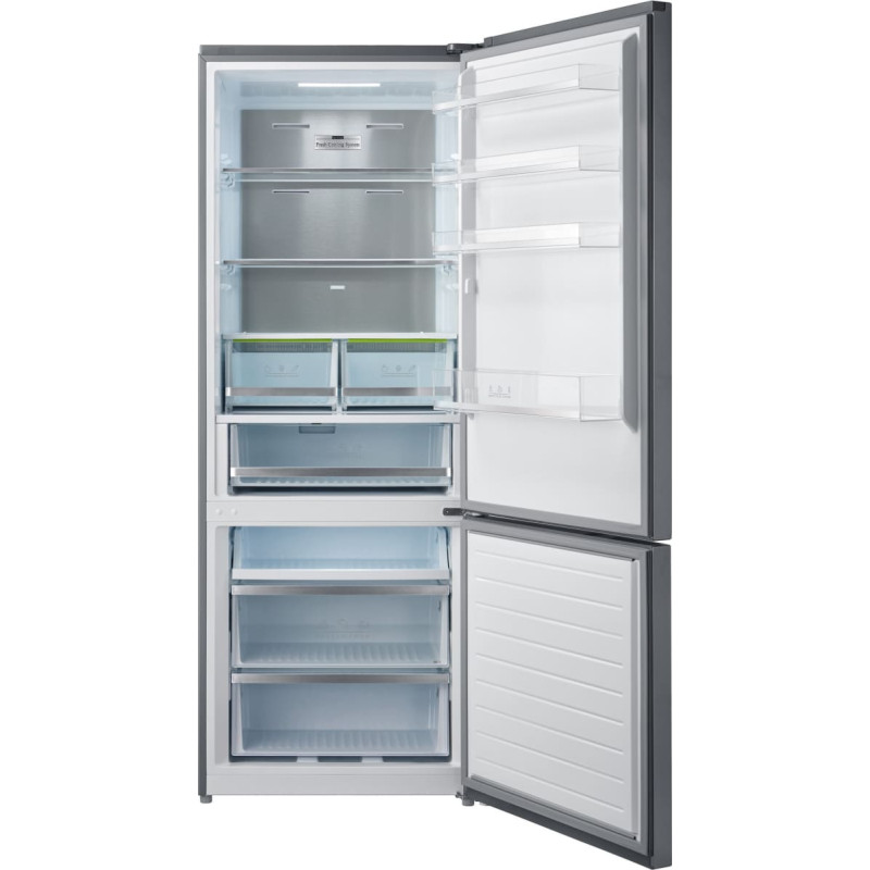 Šaldytuvas-šaldiklis Heinner HCNF-M435INVHXE++, No Frost sistema, 435 l, Energijos vartojimo efektyvumo klasė E, Inverterinis kompresorius, InoxCool technologija, Jutiklinis ekranas, Greito vėsinimo / greito užšaldymo funkcija, Chiller skyrius, LED apšvietimas, Matmenys (P × G × A): 70 × 66,6 × 188 cm, Spalva: Nerūdijančio plieno
