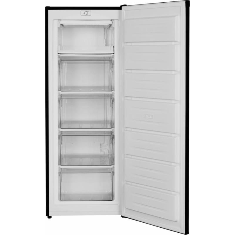 Šaldiklis Heinner HFF-HM168BKE++, energijos vartojimo efektyvumo klasė: E, bendra talpa: 168 l, mechaninis valdymas su reguliuojamu termostatu, 5 šaldymo skyriai, rankinis atitirpinimas, keičiama durelių atidarymo kryptis, šaldymo našumas: 7,8 kg/24 h, matmenys: 54,4 × 57,1 × 142,6 cm, spalva: juoda