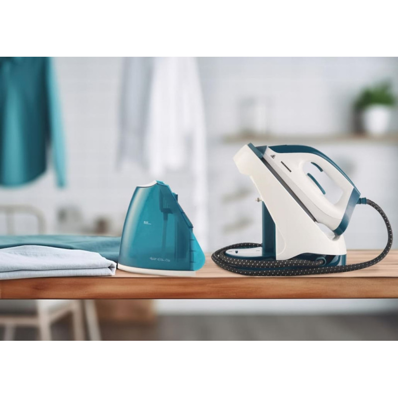 Garinimo lyginimo stotis HEINNER IdeaSteam HIS-D2005WB, Didžiausia galia: 2200W, Slėgis: 5 bar, Nuimamas vandens bakelis: 1,2 l, 4 kaitinimo nustatymai, Garai: 50±10 g/min, Laido laikymas, Nelipni lygintuvo padas, Spalva: Balta ir mėlyna