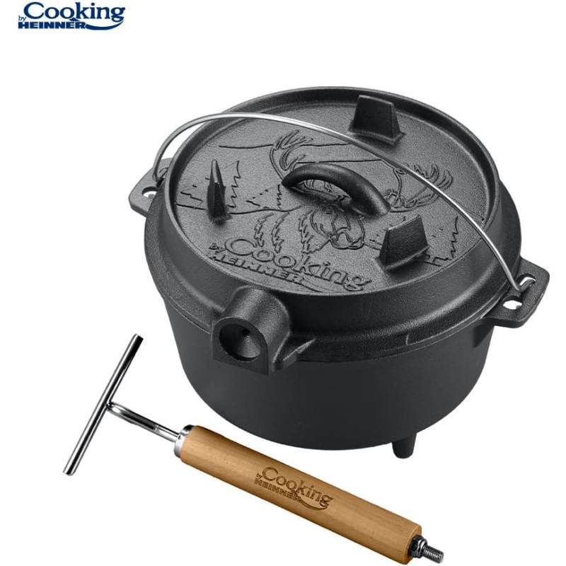 Heinner NATURE ketaus puodas su dangčiu, 25 cm skersmens ir 3.7 L talpos, puikiai tinka tradiciniam gaminimui ant ugnies ar viryklės. Pagamintas iš gryno ketaus su medine rankena, užtikrina tolygų šilumos paskirstymą ir ilgaamžiškumą.