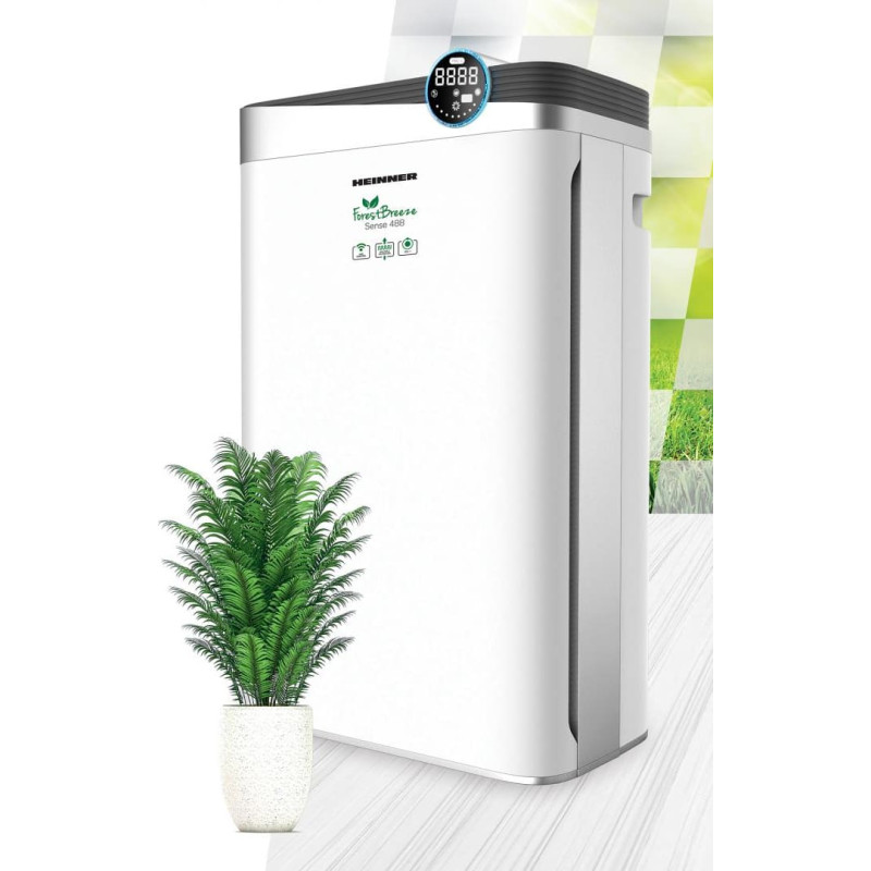 Oro valytuvas Heinner HPA-488WIFI, CADR 488 m³/h, 34–58 m², Jutiklinis valdymas su ekranu, WiFi valdymas, Nuotolinio valdymo pultas, HEPA H11 filtras, Neigiamų jonų generatorius, PM2.5 jutiklis, Baltas