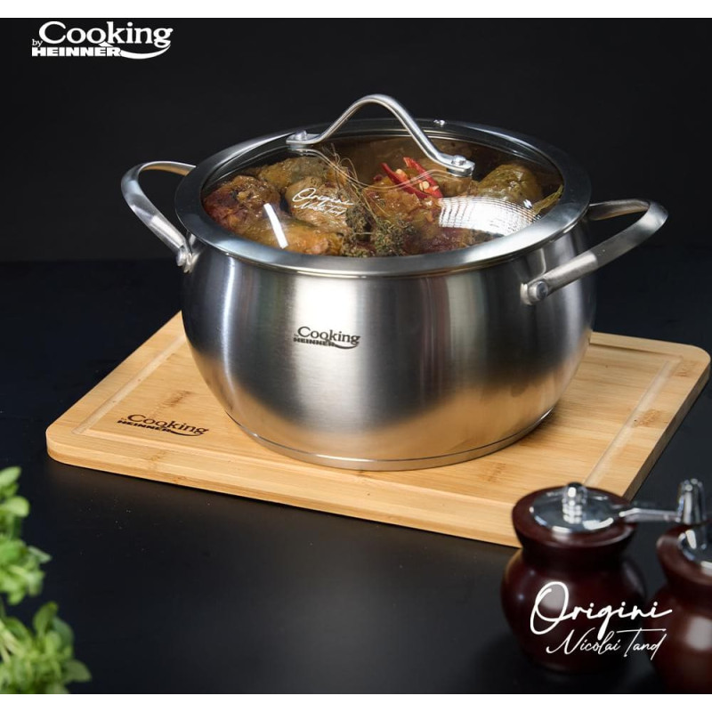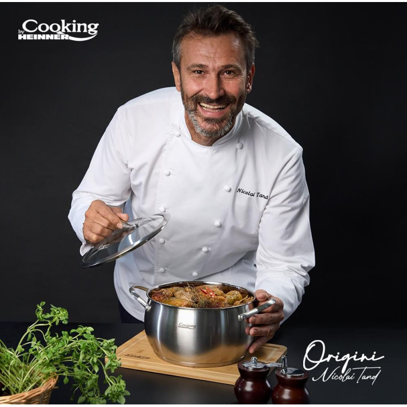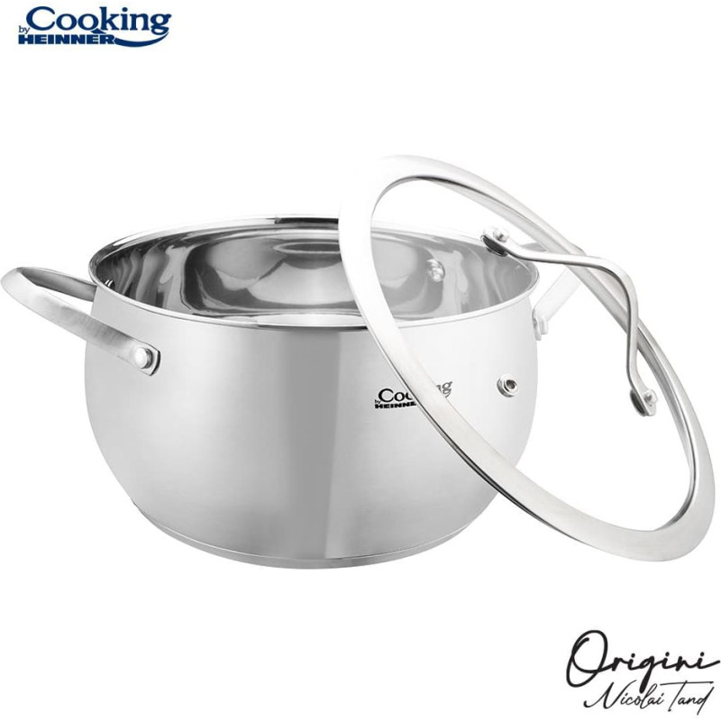 Nicolai Tand nerūdijančio plieno puodų linija sukurta tam, kad virtuvėje turėtumėte patikimą pagalbininką, nepriklausomai nuo to, ką planuojate gaminti. 5 sluoksnių kapsuliuotas dugnas tinka visų tipų viryklėms, įskaitant indukcines. Vidinė matavimo skalė leidžia patogiai nustatyti tūrį, o veidrodinio blizgesio vidus ir matinė išorė sukuria idealų produktą Jūsų virtuvei. Karščiui atsparaus stiklo dangčiai užtikrina optimalų slėgio kontrolę ir išsaugo aromatus indo viduje. Be to, bet kuris šios linijos gaminys arba visa linija yra puiki dovana bet kokiai progai, ypač įkurtuvių proga.