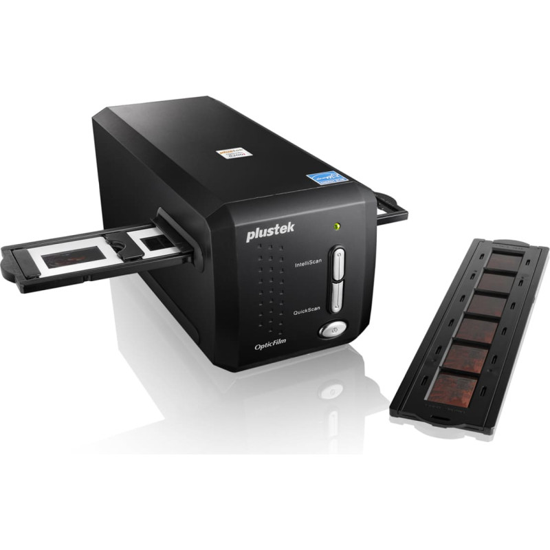 Plustek OpticFilm 8200i SE. Maksimalus skanavimo dydis: 36,8 x 25,4 mm, Optinė nuskaitymo skiriamoji geba: 7200 x 7200 DPI, Įvesties spalvos gylis: 48 bitai. Skenerio tipas: Filmų / skaidrių skeneris, Produkto spalva: Juoda. Jutiklio tipas: CCD, Šviesos šaltinis: LED, Mygtuko funkcijos: Skenuoti. Standartinės sąsajos: USB 2.0. Maitinimo tipas: DC, Įėjimo įtampa: 15 V, Srovė: 1 A